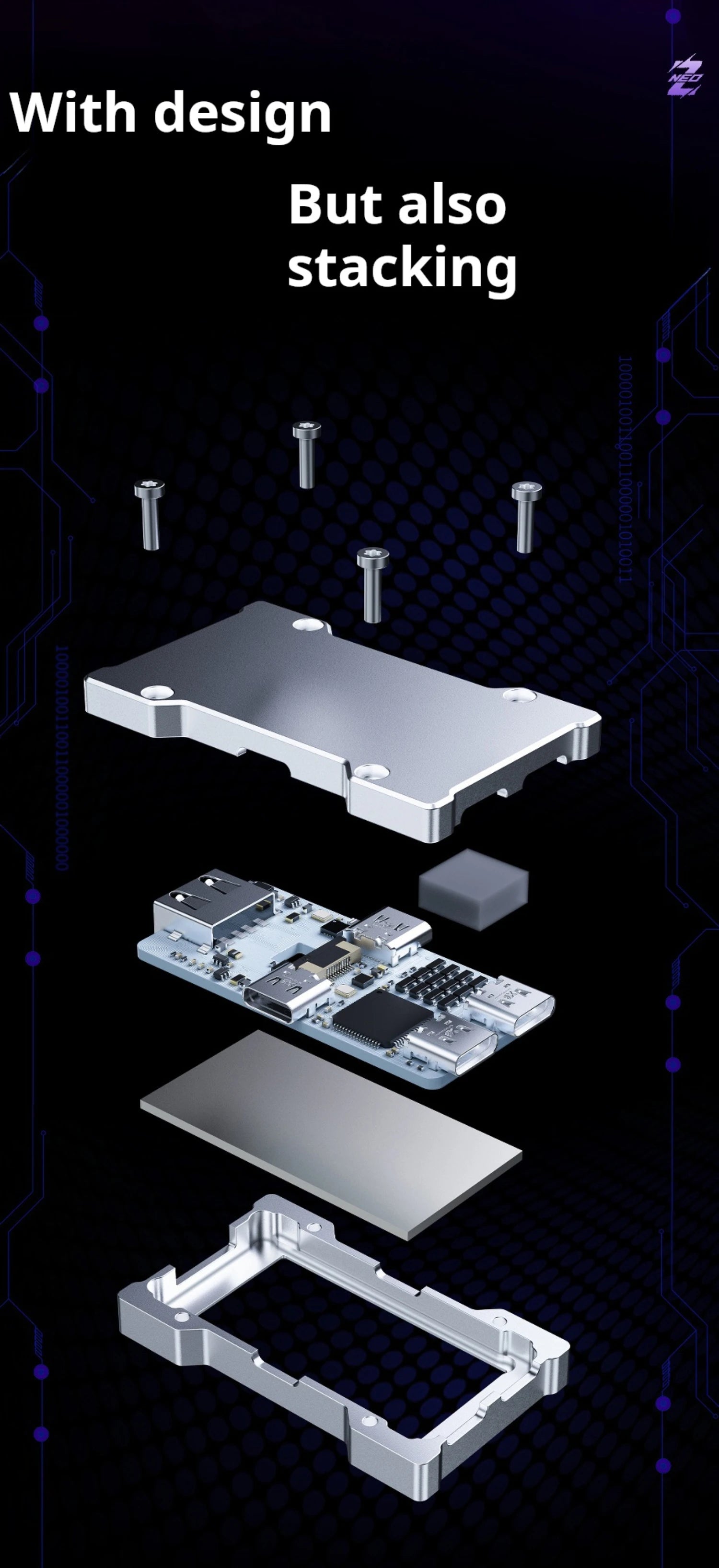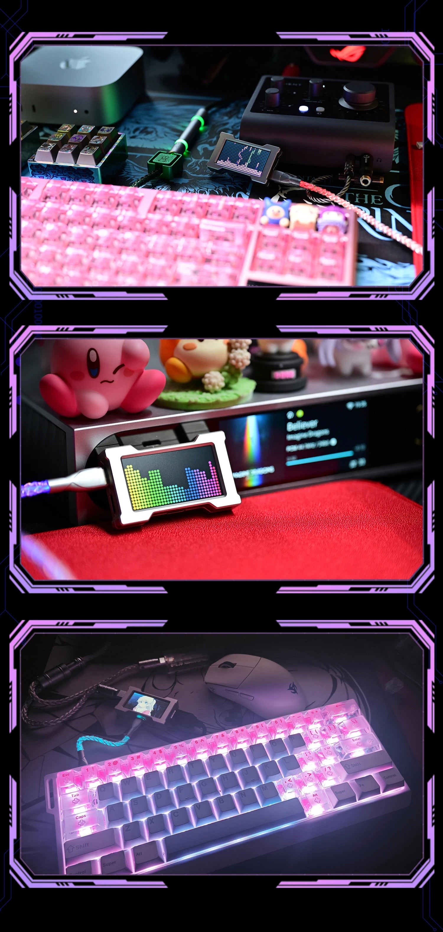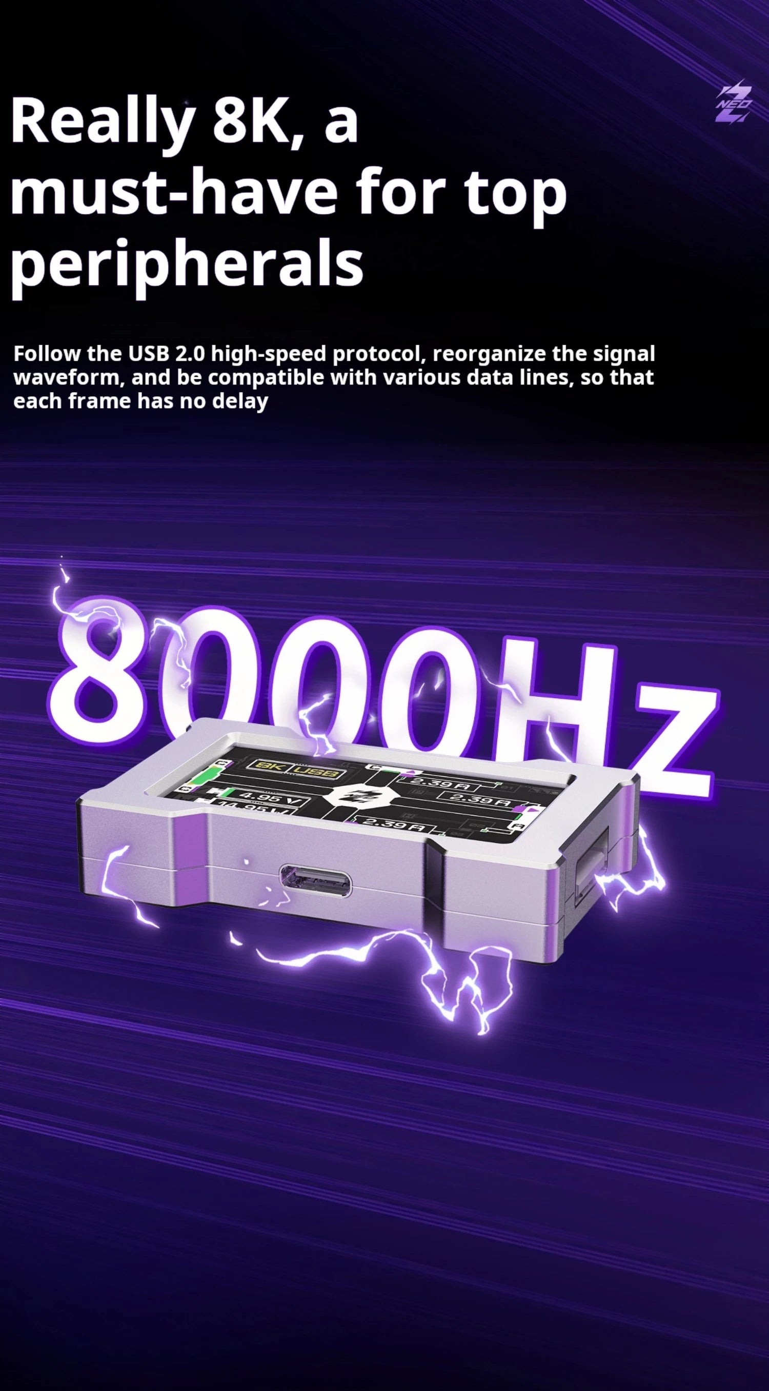 HMLAB ZNEO Gaming USB Hub - 2-to-3 Port, 8K Hz, Independent Power, With Screen, Trendy for Gaming Ambience Desk Setup